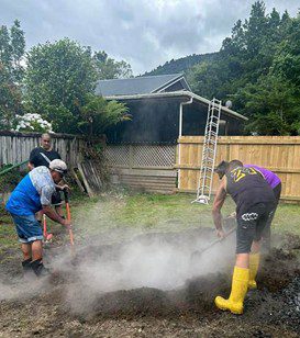 We did manage a New Year’s Day whānau lunch, ground hangi, and boy it was delicious!!! Here are some pictures – from putting in our uncooked basket of kai, to carrying it out cooked!
